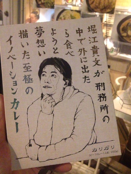 ちなみにホリエモンはみんなご存知だと思いますがカリガリとは渋谷にあるカリガリカレーというカレー屋さんです。